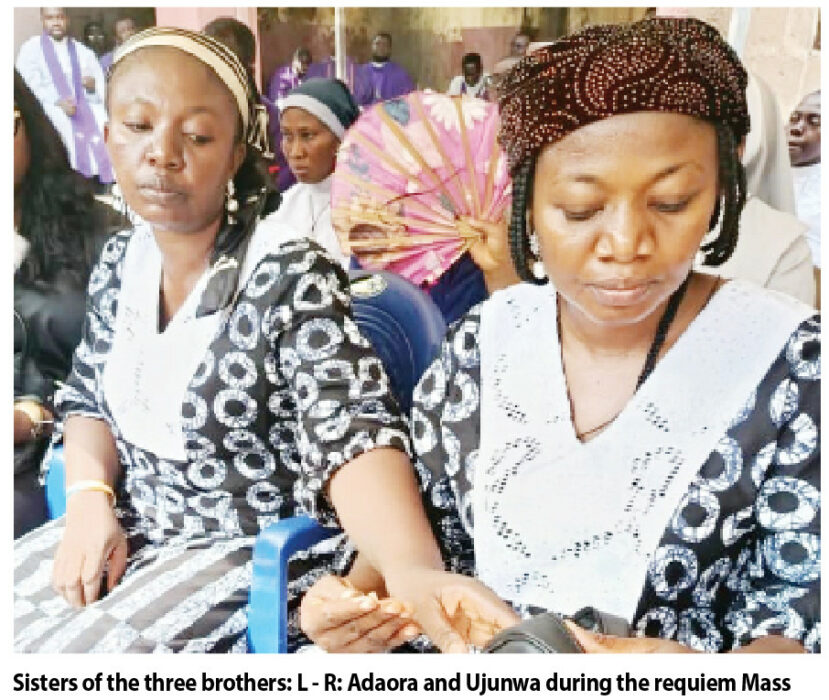 Some even wailed, bore swollen eyes with tears flowing down their cheeks like running taps as the three caskets bearing the remains of the three brothers were placed in the family compound for the requiem Mass.