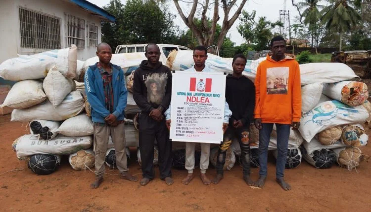 In Edo State, five suspects: Murtala Mohammed, 37; Abdulkadir Idris Mohammed, 29; Ufoma Edafe, 40; Anthony Aghati, 46; and Emmanuel Owalu Ekele, 39, were arrested on Saturday, February 14, when NDLEA operatives raided the Yoruba Camp, Olumoye Forest, in Ovia North East LGA, where 563.5 kilograms of skunk were recovered.