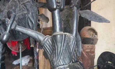 Exploring the life and art of Ajibike Ogunyemi, a leading Nigerian sculptor whose metalworks preserve Yoruba spirituality through contemporary expression. The image depicts a striking metal...
